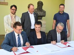 In feierlichem Rahmen setzten Landrat Götz Ulrich und Freyburgs Bürgermeister Udo Mänicke am Donnerstag im Jahn-Museum ihre Unterschriften unter die Vereinbarung zwischen dem Burgenlandkreis und der Stadt Freyburg. Letztere erhält damit vom Burgenlandkreis für die Realisierung der genannten Projekte eine Einmalzahlung von 400.000 Euro.